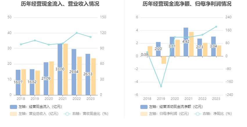 2023年,公司买卖收入现款比为112.08%,净现比为182.78%。
