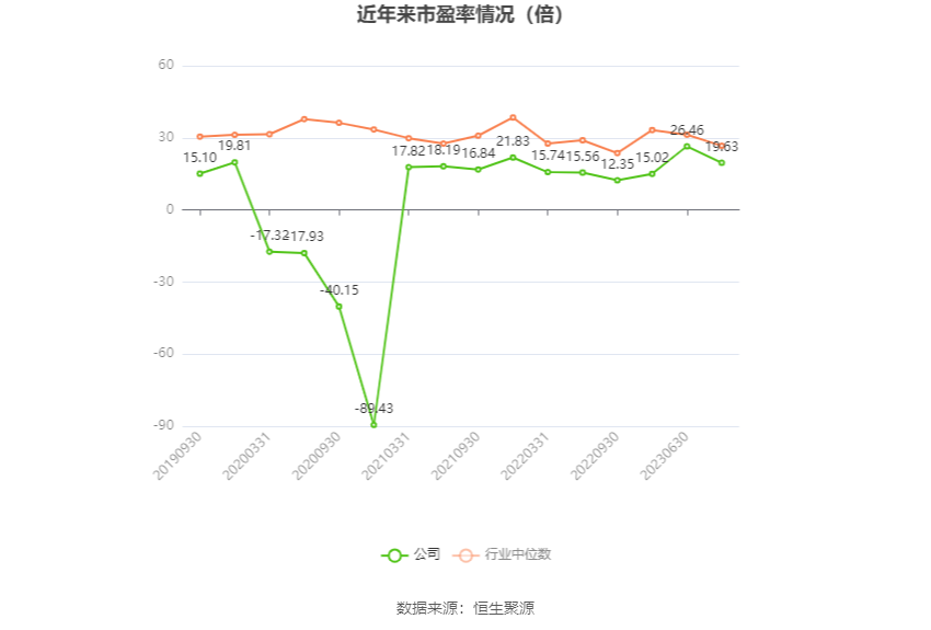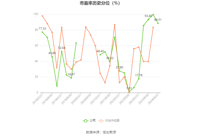市盈率为负时,不流露当期分位数,会导致折线图中断。