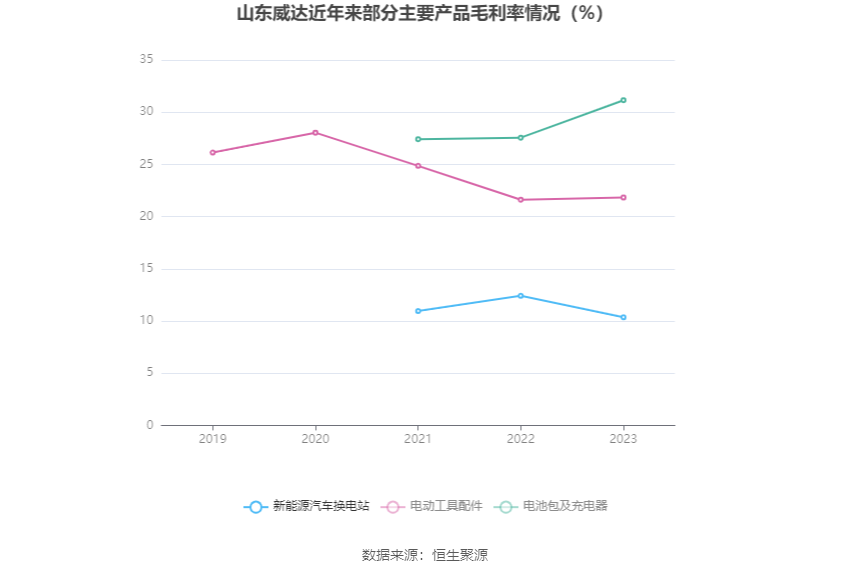 分居品看,新动力汽车换电站、电动器具配件、电板包及充电器2023年毛利率区分为10.35%、21.83%、31.15%。